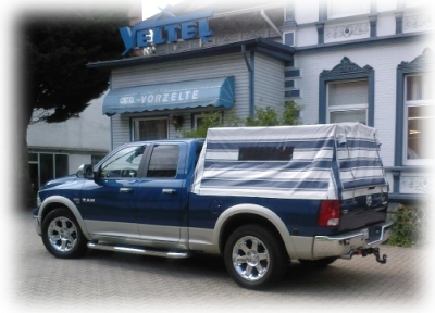 Veltel-Zelt für Pick-Up (mit Innenzelt als Schlafzelt) Sie reisen mit Ihrem Wohnwagen und möchten ihn trotzdem durch ein Schutzdach schützen? Dann ist unser Schutzdach "mit Führerschein" etwas für Sie! |